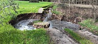- Ainda nesta rua, está sinalizada a travessia da regueira proveniente do Ervideiro, pois, devido ao elevado caudal e à deficiente limpeza da mesma a jusante, a água passa por cima da estrada. A circulação deve ser feita com todo o cuidado.